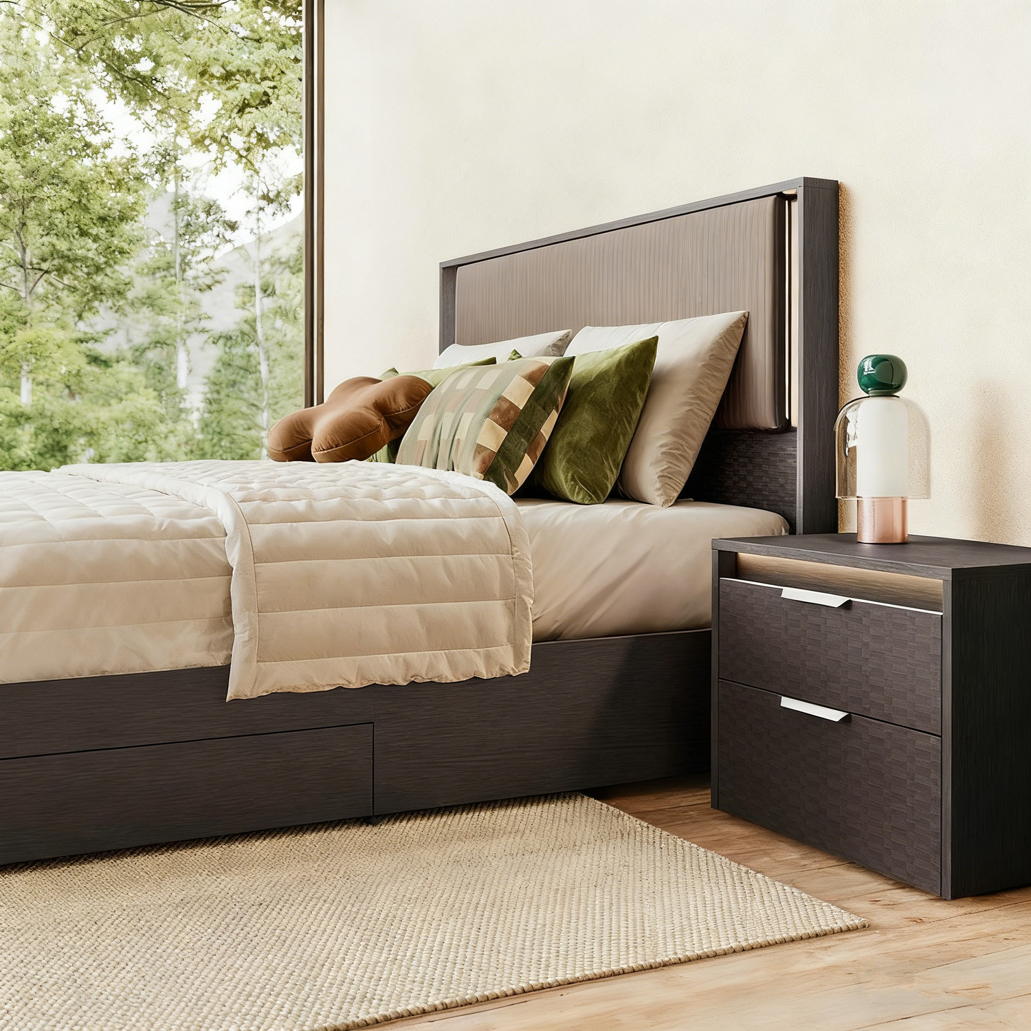 It features convenient storage spaces to keep your nighttime essentials within easy reach, helping you maintain a clutter-free bedroom.
