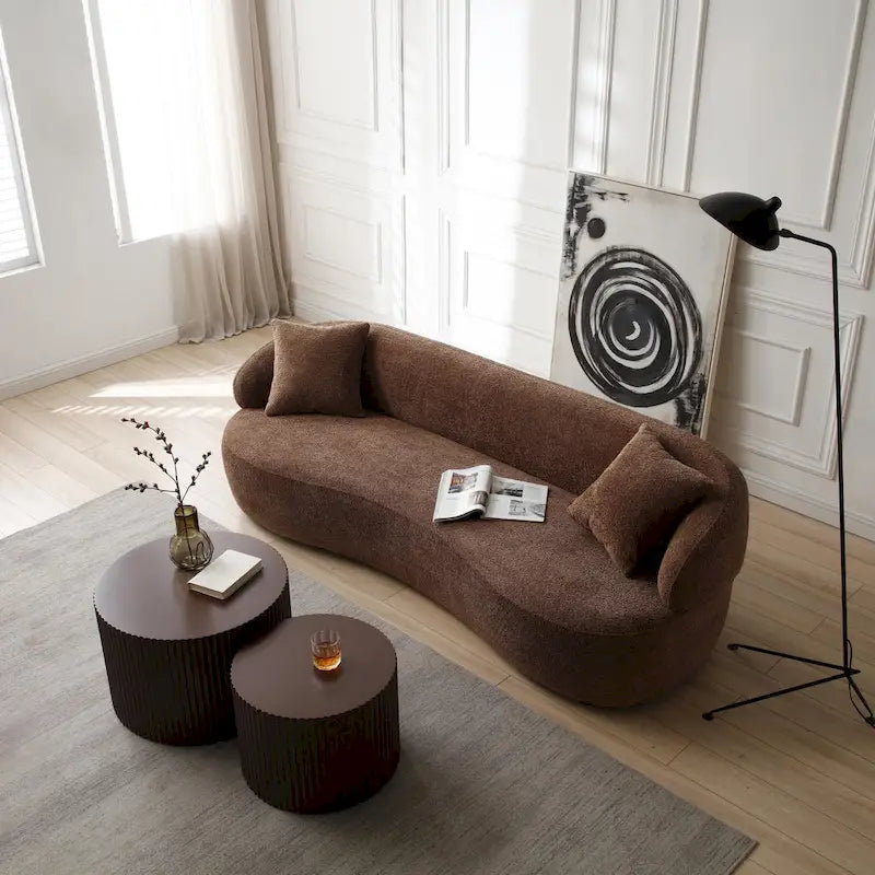 86.61in 3 Seater Modern Curved Upholstered Fabric Sofa Courch