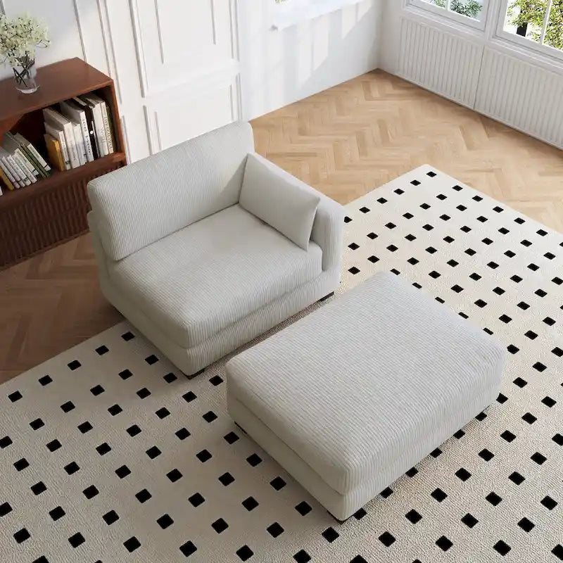 This modular sectional sofa offers two corner sofas and two footstools, allowing you to customize the configuration according to your unique space requirements. The design provides ample space for sitting, napping, or even playing. Segment design gives you the flexibility to rearrange each section and create various seating arrangements, or even separate them into individual seats.