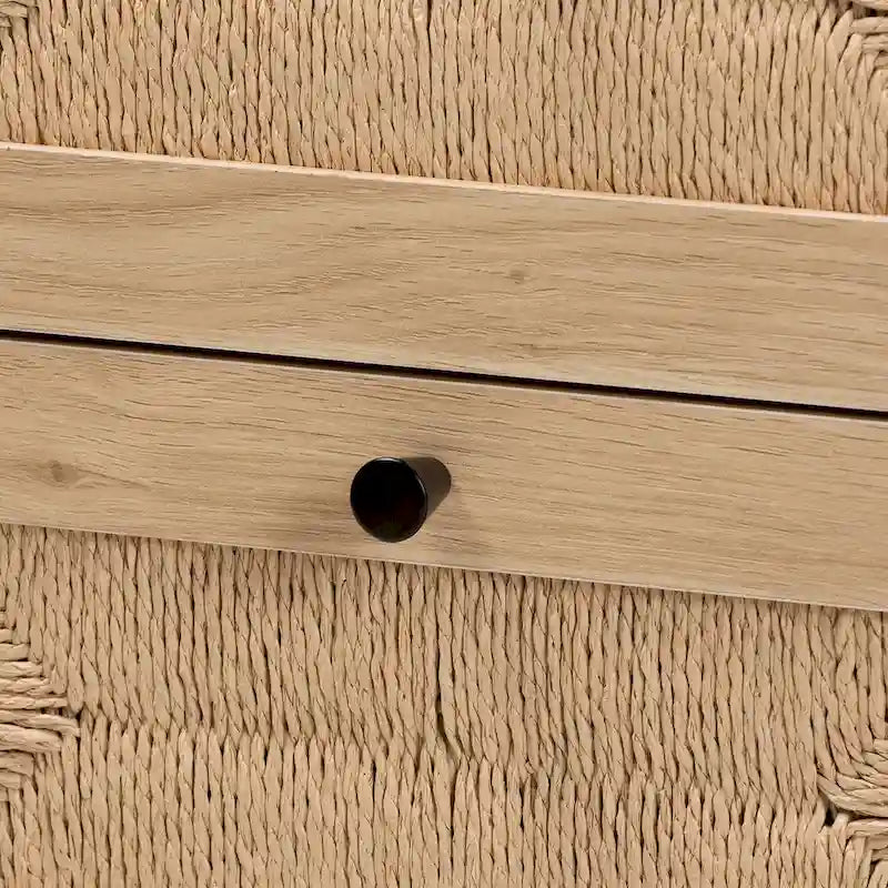 Satisfy the needs of your space with the versatile craftsmanship of the Cherelle end table. Made in China, this mid-century inspired piece is crafted from sturdy wood. Two drawers offer convenient storage to organize your space while reserving the tabletop for daily use. The Cherelle requires assembly and features woven rope embellishments for a touch of rustic flare. Round drawer knobs lend eye-catching geometry, making the Cherelle end table a refreshing addition to any layout.