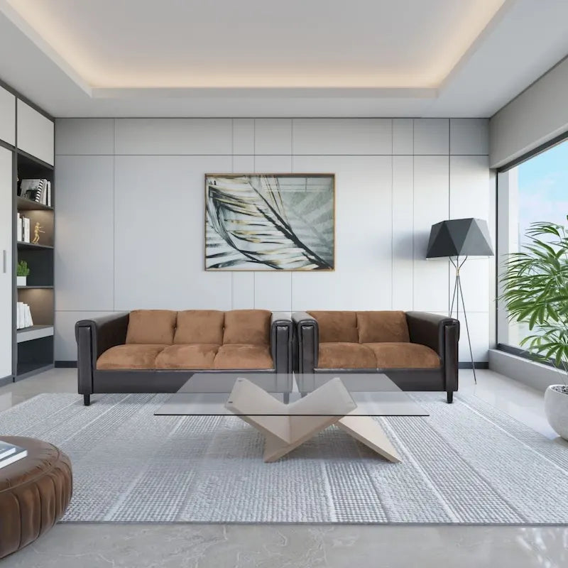 Introducing our Broadway brown couch living room sofa set, a seamless blend of modern design and opulent comfort. This exquisite sofa set for living room is destined to be the centerpiece of any living space. Elevate your home decor with this loveseat and sofa set, as the modern style of this set of couches seamlessly adapts to any room. Built on a sturdy wood frame, this couch set for living room guarantees lasting durability and stability.