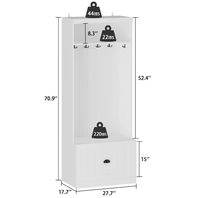 - 27.7W Hall Tree: 27.7W x 17.7D x 70.9H