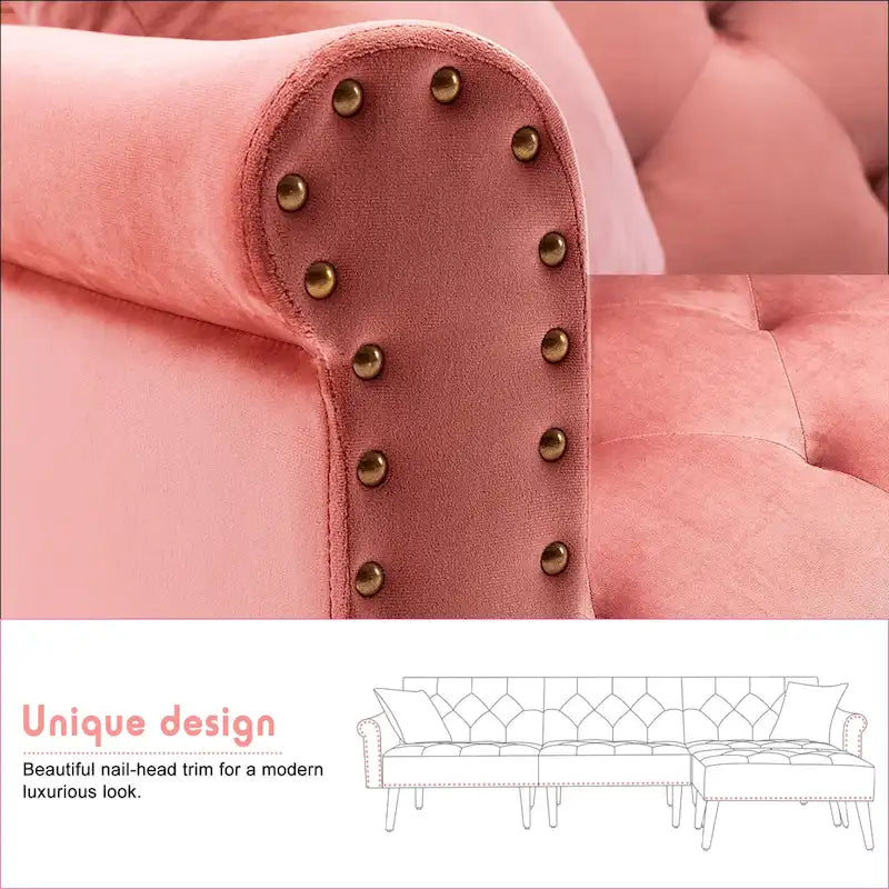 Add a touch of mid-century modern glam to your home with the Ivinta Convertible Velvet Sofa Couch. This elegant sectional sofa is perfect for any space as it can be used as a loveseat, sofa bed, or futon with a matching accent chaise. Combining top-quality craftsmanship with high-density foam, this sofa is both comfortable and durable. The velvety soft fabric and tufted cushions provide a featherlike softness and a unique sheen to enhance the look of your living room, den, or home office. With its stable and comfortable construction, this sofa can accommodate up to 660 lbs. Assembly is made easy with all parts and instructions included. Choose from four different colors to match your decor.