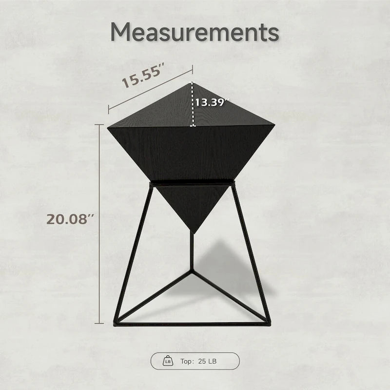 COZAYH Modern Geometric End Table with Wooden Top and Metal Base, Unique Pyramid Side Table Plant Stand for Office, Triangle