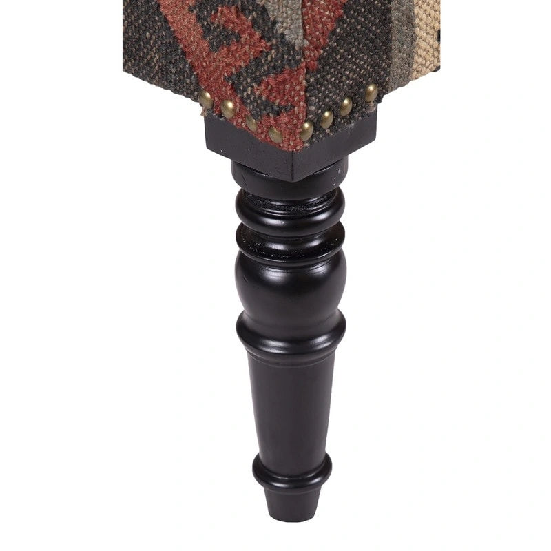 Handmade Kilim Upholstered Wooden Bench (India) - 48 L x 16 W x 18 H