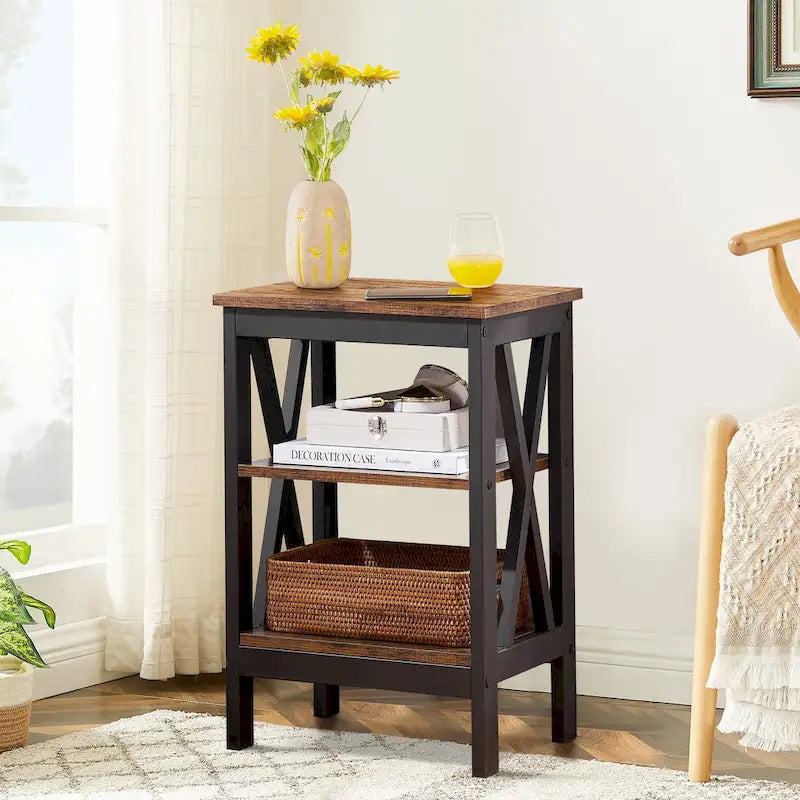 Enjoy a comfortable living room environment with this 3-Piece X-Cross table set which includes one brown/black coffee table and 2 Brown/Black end tables, the stylish exterior design is suitable for most living room decorations and blends perfectly with your furniture, High -quality materials and sturdy structure, rust-resistant and wear-resistant, can be used for many years, and ample storage space is convenient for organizing daily necessities and personal items, making your space more tidy and orderly.