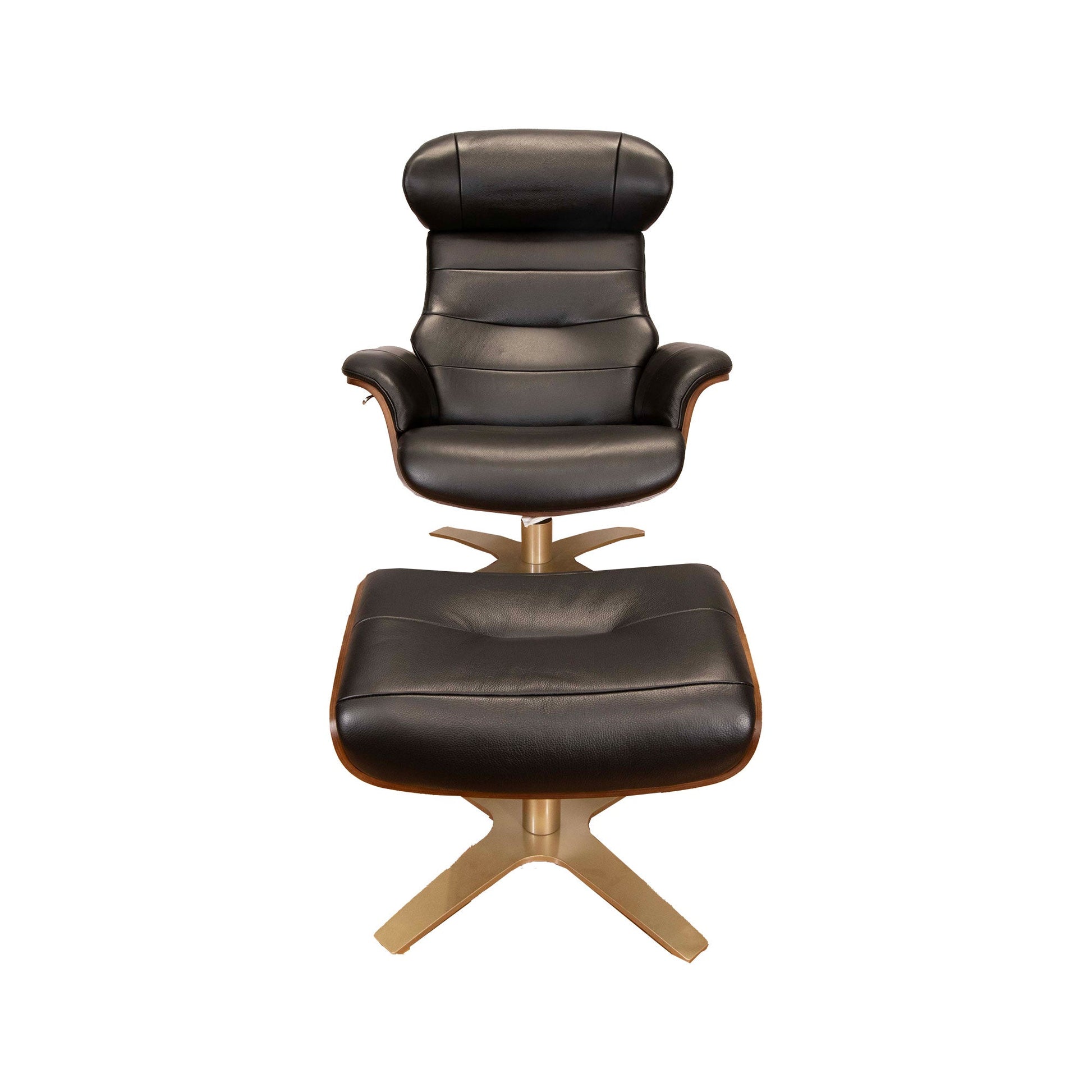 Experience the luxurious comfort of the Mercer Chair & Ottoman. With its modern style and sleek black top grain leather, this chair and ottoman set will bring a stylish touch to any room. The wood accent adds a unique touch, while the ergonomic design ensures maximum comfort.
