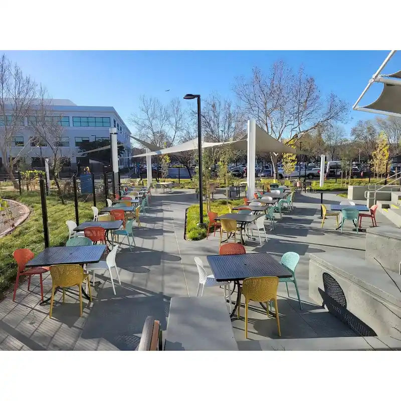 Modern Plastic Garden Patio Indoor or Outdoor Dining Stackable Chair UV Protected Armless With Dot Back Surf