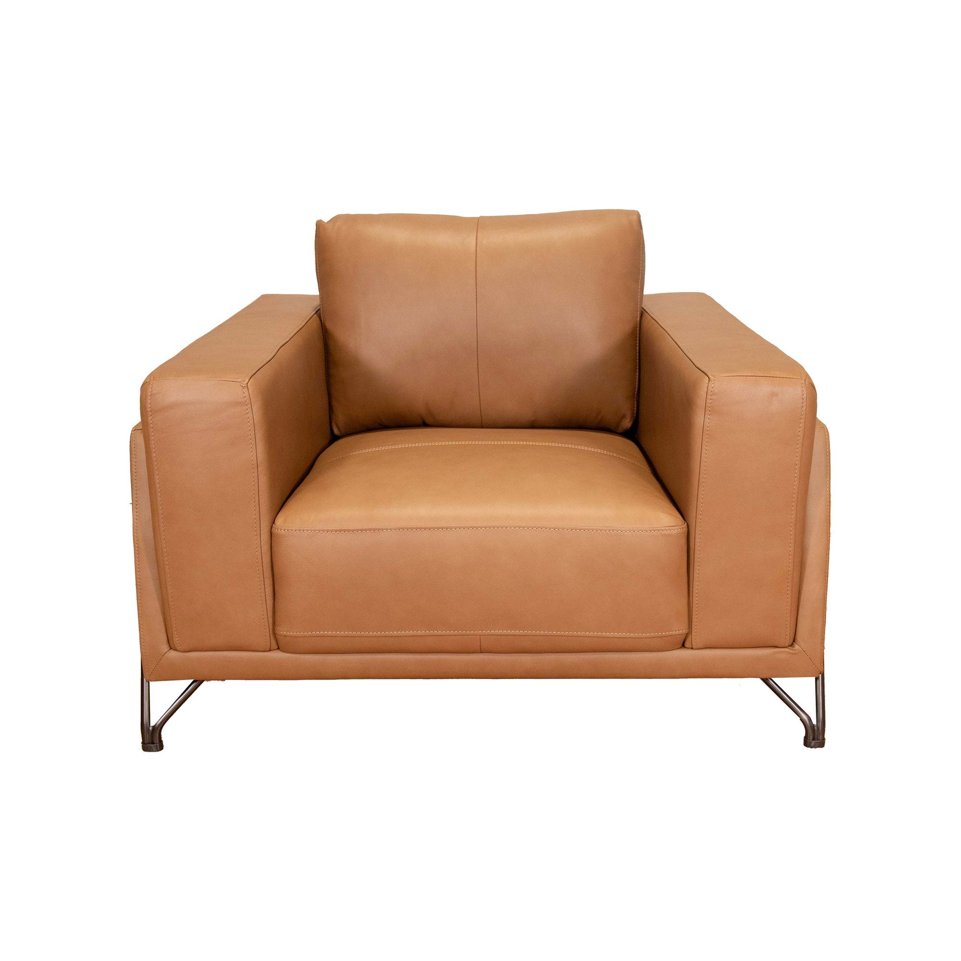 The Monroe Collection is shown in Aline Butternut Leather. This modern, trend-forward set is perfect for bringing contemporary and cozy vibes to your living space!