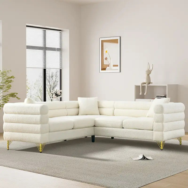 Ouyessir Teddy Fabric Modern Sectional Sofa Sets L-Shape/2/3/4 Seater Sofa Couch with Pillows