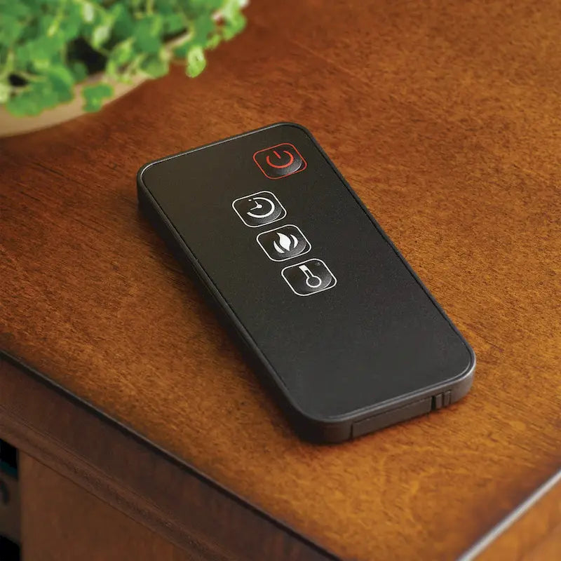 The Merrill media fireplace doubles as an entertainment center for flat panel TVs up to 60-in. Beautiful traditional styling and hand-applied merlot finish make this fireplace a focal point in any room. This unit has built-in ventilation and hidden wire management channels to help keep unsightly wires under control. The fireplace includes a center shelf for media components and (4) storage shelves for accessories hidden behind operational doors on either side of the fireplace. 4,777-BTUs of fan forced air heat will heat up to 400 square feet, or use the flame without the heater for 4-season enjoyment. The fireplace comes with (3) flame adjustments and (10) thermostatic temperature levels. The temperature and timer functions are displayed on the control panel's LCD read-out, and all of the fireplace functions can be operated by the fully integrated remote control.