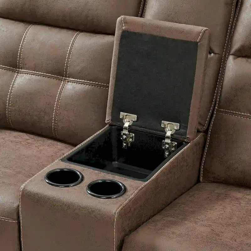- [COZY SOLUTION]: This reclining set blends style and comfort with its plush, cushioned back in brownie tones. The pillow arms and tan stitch detailing add a touch of warmth and contrast to the overall design.