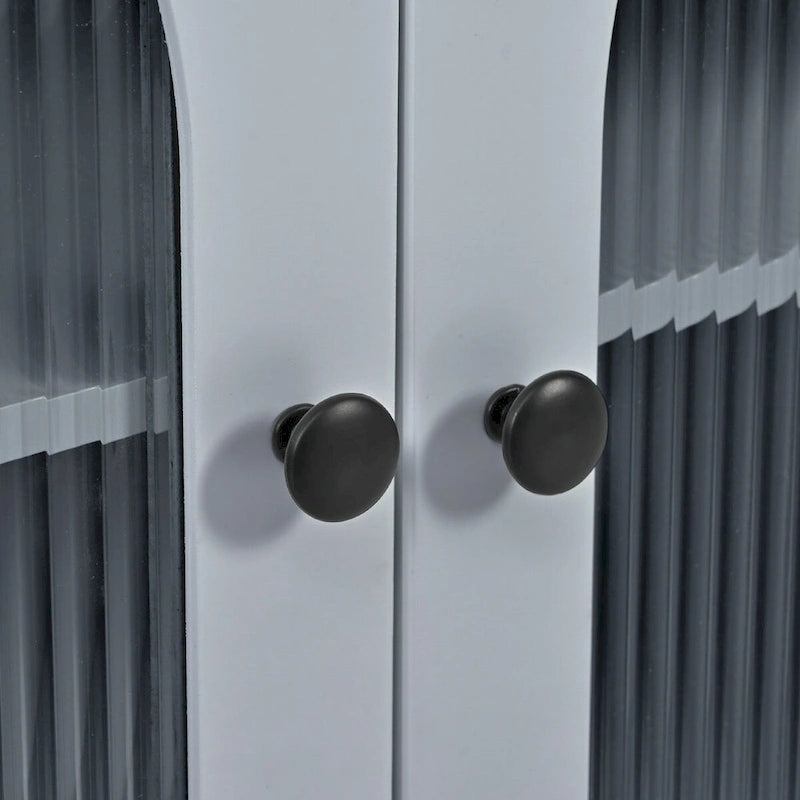 [Fluted Glass Door & LED Light] Our kitchen island on wheels boasts two exquisitely crafted fluted glass doors, which not only refract light but also create a captivating misty effect. The incorporation of sleek white LED lights within the foggy surface adds an enchanting aesthetic touch, elevating the overall allure of your kitchen space. Furthermore, you have complete control over the LED switch through the power outlet.
