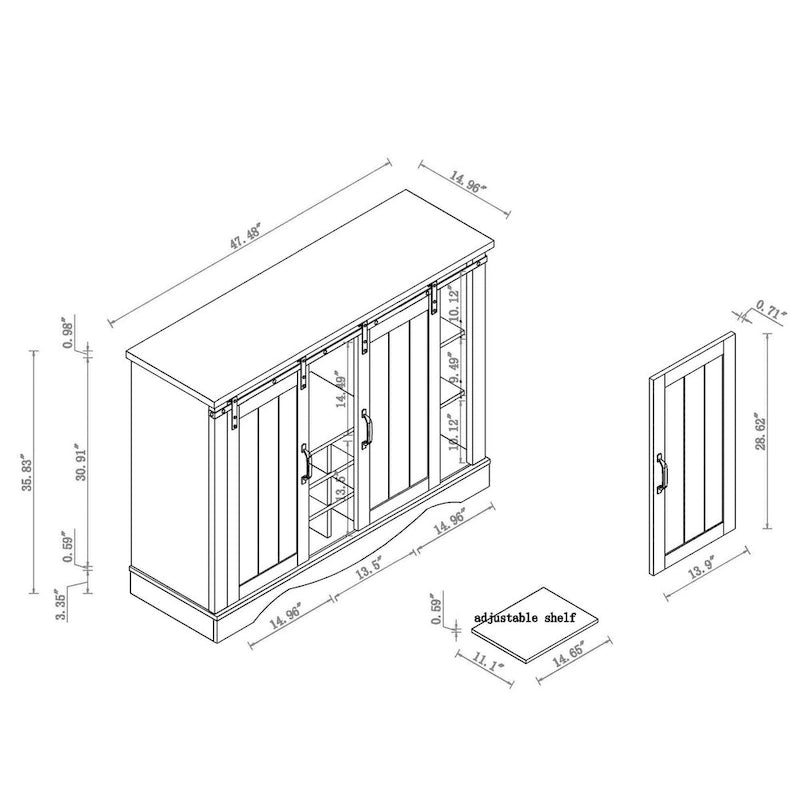 Rustic 47-inch Bar Cabinet with Sliding Barn Door
