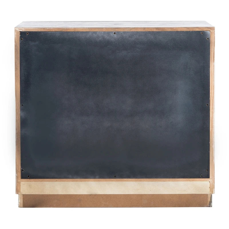 Add designer style to the bedroom with this modern 3 drawer chest. Inspired by the work of master artisans, its intricate copper nailhead design and deluxe beige linen panels, complements its finish. Generous storage makes it a contemporary classic.