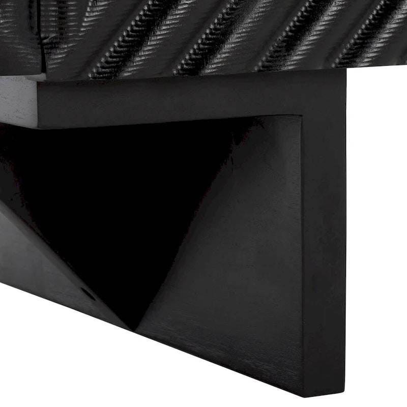 Elevate your space with the sleek and artful flair of our Hewitt sideboard. The sideboard offers drama and visual intrigue with a stunning relief. Crafted from acacia wood, the relief showcases bold geometry and rhythmic lines for a rich artisanal appeal. A sleek finish accentuates the clean and sophisticated profile of the sideboard. It floats upon slender legs to offer a chic and elevated style to your lounge, dining, bedroom, or home office. Featuring four roomy drawers, our sideboard can hide all your essentials behind its stunning facade.