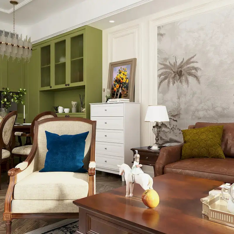 MODERN DESIGNEnhance your home with the sleek and versatile design of this 5-drawer dresser. It seamlessly blends into various settings such as the office, bedroom, or kitchen. Not only does it serve as a convenient clothing organizer and lingerie dresser, but it also functions as an elegant accent storage cabinet for your living room.