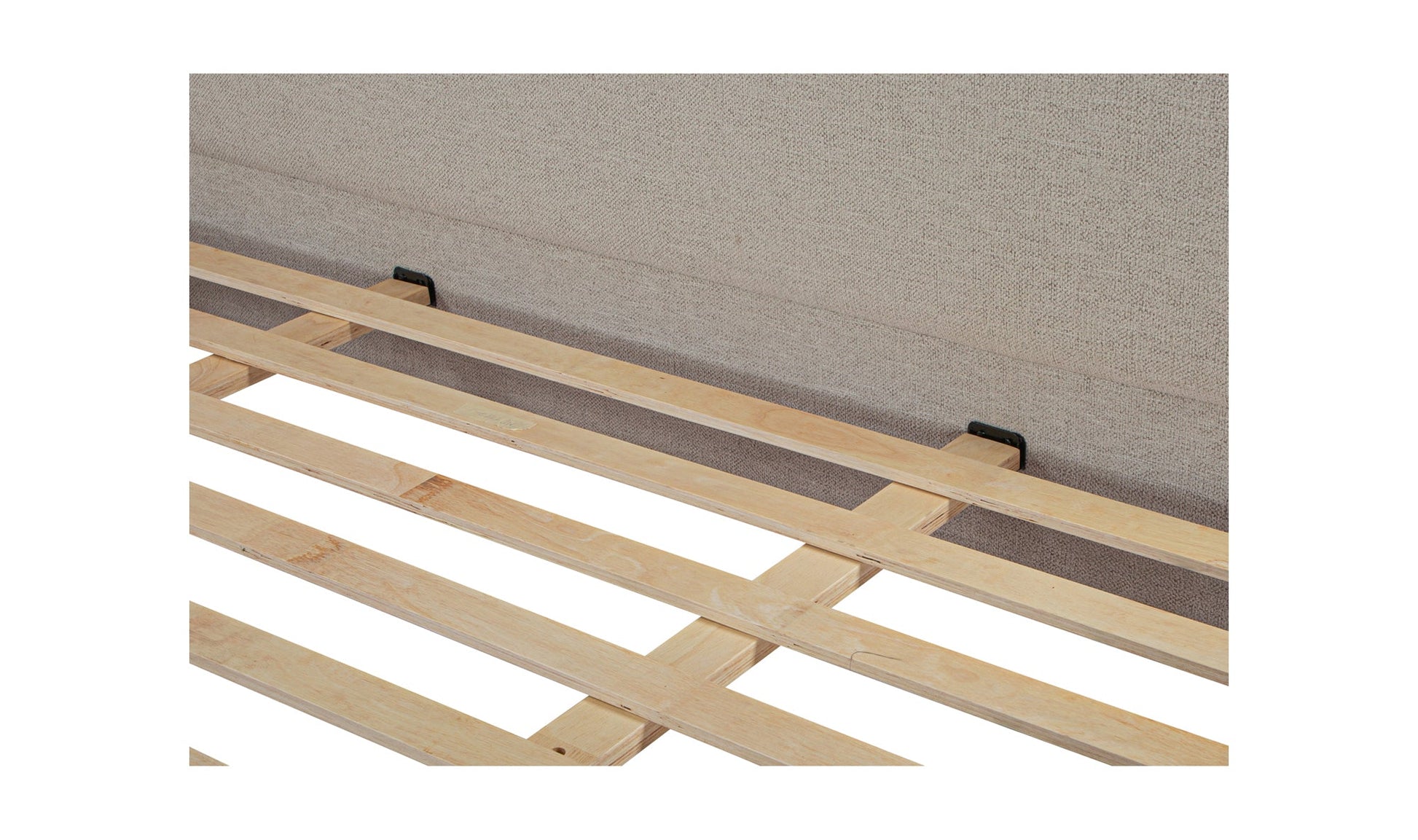 The Vincent Bed's classic four-post design exudes warmth and sophistication, crafted from robust rubberwood with a rich midtone brown stain. The plush, upholstered headboard, wrapped in soft polyester fabric, invites touch and creates a serene focal point, transforming the bedroom into a sanctuary of understated luxury and restful comfort.