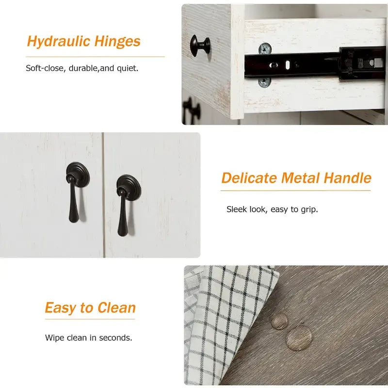 LARGE STORAGE BUFFET SIDEBOARD: The sideboard buffet cabinet showcases a wide 59-inch tabletop, offering ample storage for your dining essentials, including dishes, glassware, and cutlery, with 2 drawers and 4 cabinet doors. The simple design of our farmhouse buffet sideboard cabinet fits various home styles, making it perfect for use in dining rooms, living rooms, or hallways.